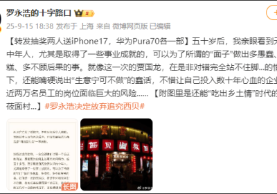 9月15日18点多,罗永浩针对西贝事件再发文:“五十岁后,我亲眼看到无数的中年人,尤其是取得了一些事业成就的,可以为了所谓的‘面子’做出多愚蠢、多糟糕、多不顾后果的事。就像这一次的…
