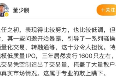 本周最大的消息就是传言已久的易会满被查消息落地。 股民群体对易会满任证监会主席期间的最大印象是,上市公司史无前例扩容大跃进,以及任期内上证指数3000点20次失守。 中国政法大学资…