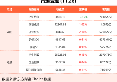 网络 2025-11-27 15:00:32 股市要闻 2025-11-27 15:00:32 阅读 A股三大指数今日冲高回落,截止收盘,沪指涨0.29%,收报3875.26点;深…