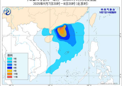 本文转自【人民网】; 中央气象台9月7日18时发布暴雨黄色预警: 预计,9月7日20时至8日20时,广东中南部、广西东南部有暴雨到大暴雨,其中,广东西南部局地有特大暴雨(250~2…
