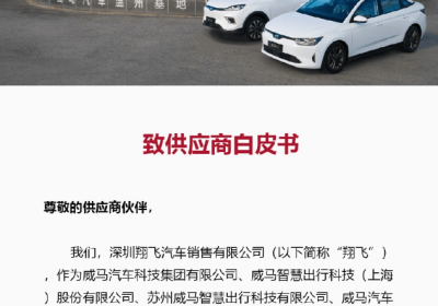 每经记者:孙桐桐 每经编辑:何小桃,裴健如 9月6日,深圳翔飞汽车销售有限公司(以下简称翔飞汽车)对外发布《致供应商白皮书》(以下简称《白皮书》),明确其作为威马汽车科技集团有限公…