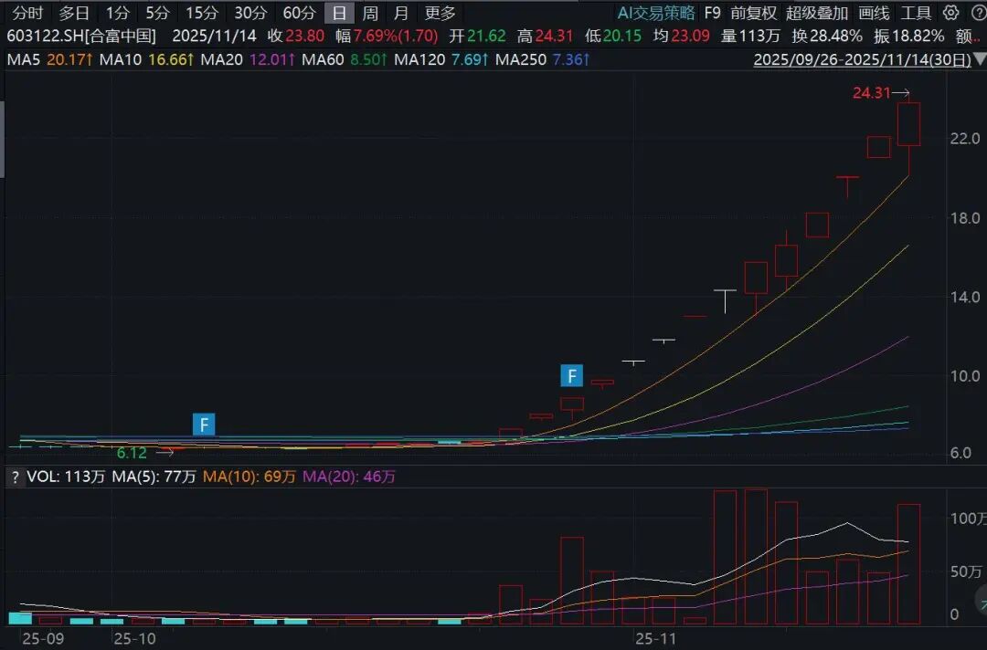 大健康产业牛股辈出,合富中国(603122)14个交易日12涨停,累计飙升逾265%,人民同泰(600829)连续5日涨停,金迪克5日3板,盘龙药业、众生药业均3日2板,特一药业4日2板。
